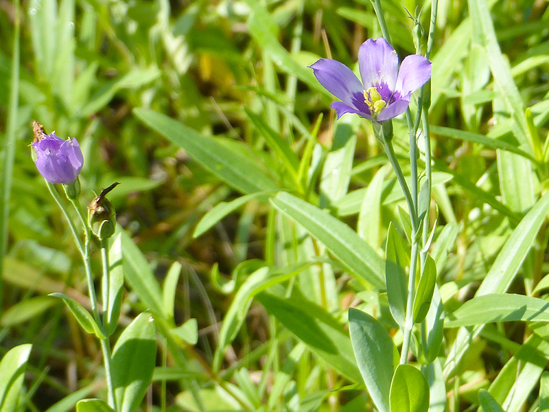 Getting to see the gorgeous flowers of marsh gentian (Eustoma exaltatum) is always a delight. Its many common names — catchfly prairie-gentian, bluebell gentian, seaside gentian, blue marsh lily, small bluebell, and tulip gentian — belie its curious and extensive range from Florida to California and throughout the prairie as far north as South Dakota and Wyoming. It also grows in the West Indies, Mexico, and South America.