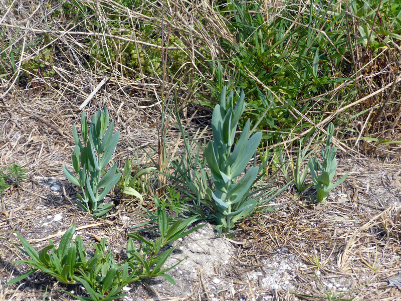 Its opposite leaves are grey-green, elliptical, from 1 – 2 1/2″ long, and clasp the stem. They are shown below at the Maritime Hammock Sanctuary in an open disturbed area in full sun.