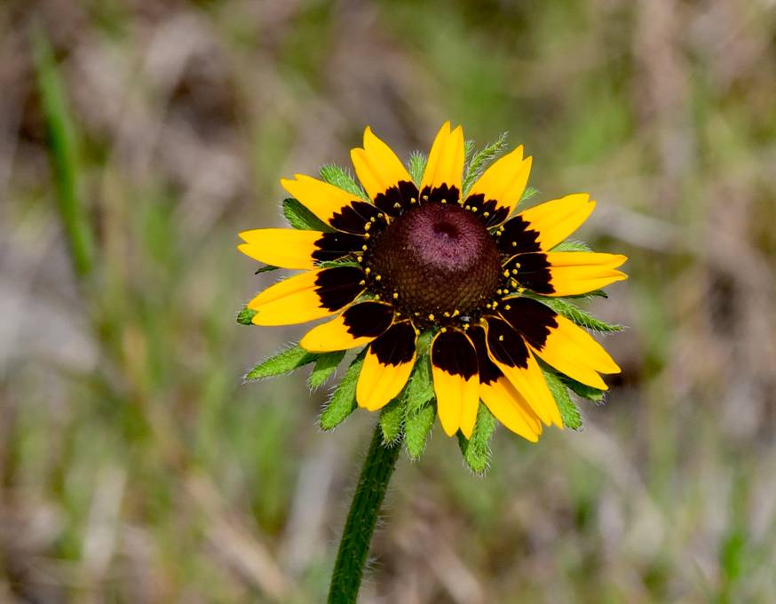 A plant friend identified it as blackeyed Susan (Rudbeckia hirta), which was confirmed by Marc Frank, Extension Botanist, UF/IFAS Plant Identification and Information Services. He wrote: Generally, the more broadly distributed a species is the more variable it is likely to be. In the Flora of North America, four different natural varieties of Rudbeckia hirta are recognized, and three of these occur in Florida. In addition, work by some plant breeders shows that there are both diploid and polyploid forms of Rudbeckia hirta, and this probably accounts for some of the variability observed as well.