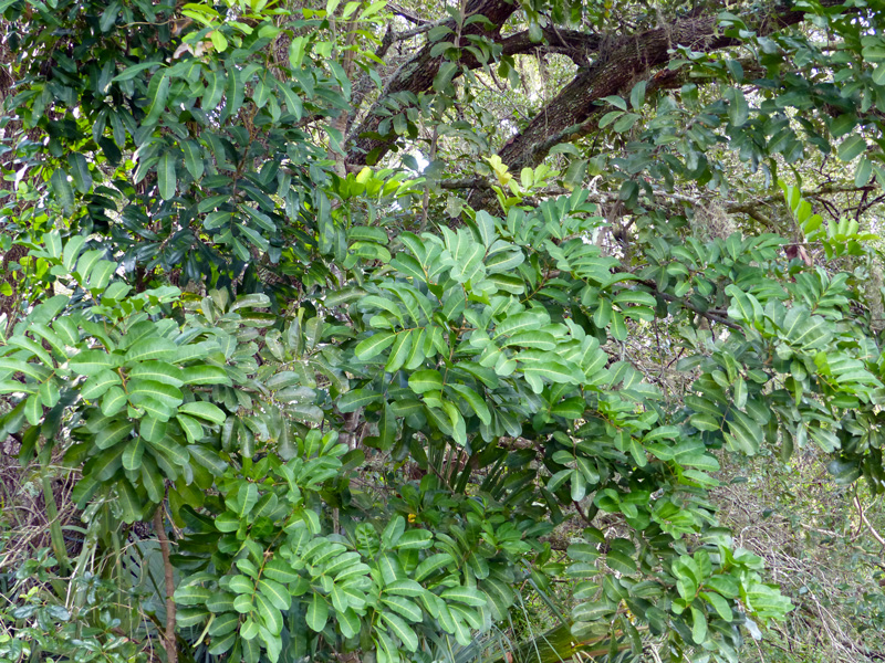 This ornamental tree with compound leaves and an orangish tap root is on the Florida Noxious Plant List, which prohibits its cultivation and sale. Unfortunately, its prohibition came far too late, after it was much-planted as a landscape ornamental. It invades many natural areas including hammocks, coastal wetlands, spoil islands, and neighbor’s yards. Birds, especially crows, and other wildlife spread its seeds.