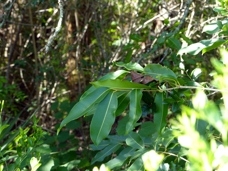 At first glance I thought that this plant was a strangler fig (Ficus aureum), but, when it lacked a milky sap, I knew that it was not. Also known as jambolan or jambu, this large tree (to 75′) of African and Asian origin was introduced in the early 1900’s for its purple plum-like fruits that some say taste like glue. It volunteers in light shade in moist-ish places and is not at ORCA (at least yet).