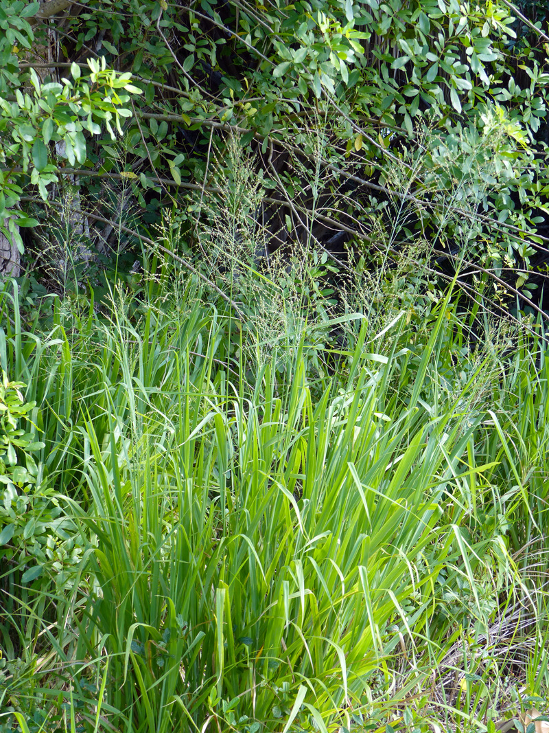 This weedy grass is very variable and can grow to be from 3 – 16′ tall. Its seeds are borne in open floppy terminal panicles, and you will find it growing in a variety of disturbed places including along roadsides, at the Pelican Island National Wildlife Refuge, at ORCA, in abandoned orange groves, and elsewhere. Giant panicum is another common name for this grass, and Panicum maximum was a former scientific name.
