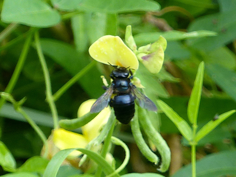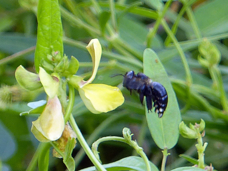 Pollinators visit its brightly colored flowers, including this southern carpenter bee (Xylocopa micans) photographed at PINWR …