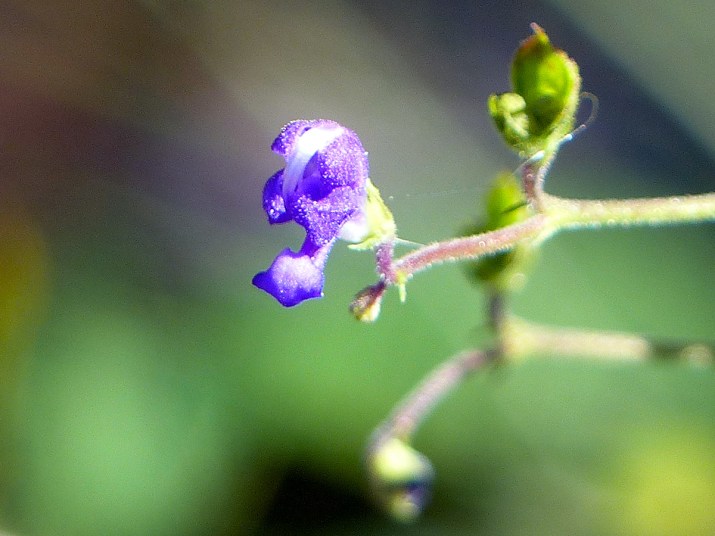 A thin multi-branched annual, forked bluecurls often begin flowering in the spring, and flowering often continues into the late fall. It very soon will finish up flowering at the south Oslo Riverfront Conservation Area. Each pollinated flower produces 4 nutlets, each with one seed.