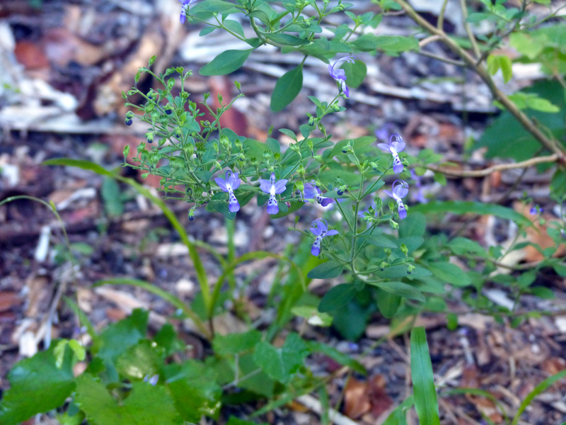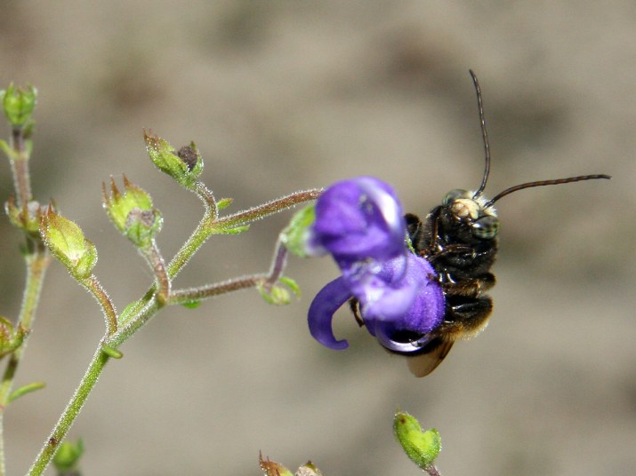 Forked bluecurls (Trichostema dichotomum) flowers open early in the day. That’s when the beautiful blue flowers are erect with long curled Its stamens (male parts) and styles (female parts).