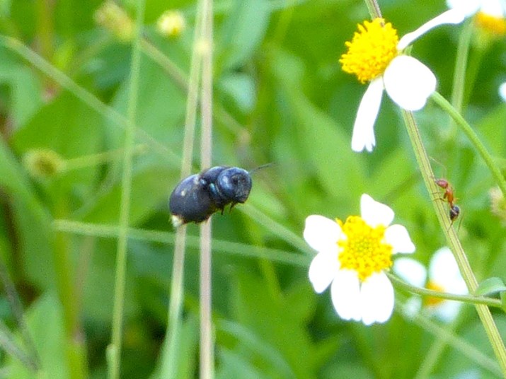 Native carpenter bees (Xylocopa micans) were smitten with this weedy little daisy in the Everglades and no European honeybees were present.