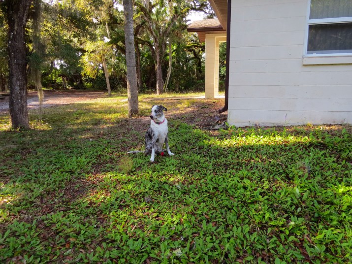 Below our dog Pepper, who is now in Heaven, provides scale for a big patch of lyre leaf sage at the south labs of the Florida Medical Entomology Laboratory.