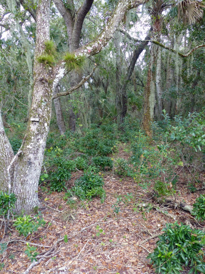 Native to southeast Asia and introduced to Florida as an ornamental plant in the 1800’s, coral ardisia escaped from cultivation and was so invasive that it was placed on the Florida Noxious Weed List in 1995. Research has shown that, depending on site conditions, 84% to 90% of its seeds are viable and can persist in the seed bank for many months. Below is a photo from the Indian River Lagoon Greenway where coral ardisia, if not removed, likely would have overtaken the adjacent native beautyberry (Callicapra americana).