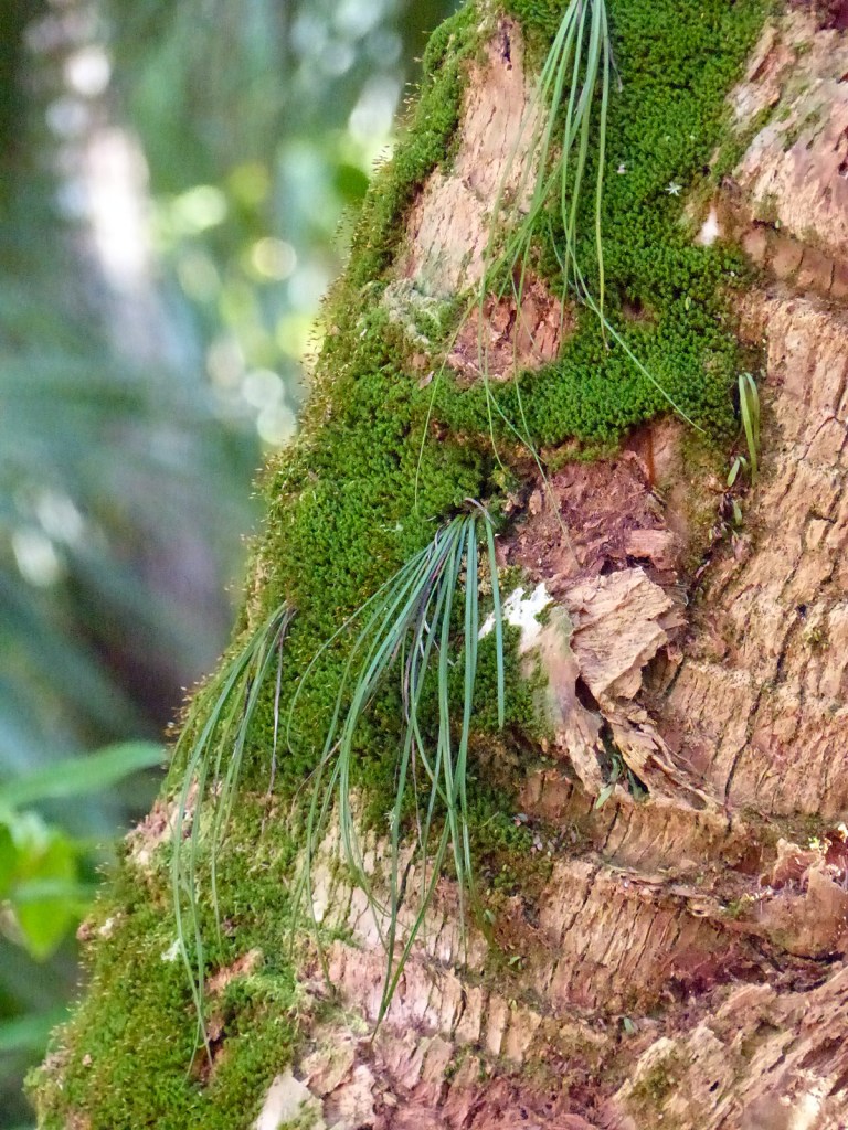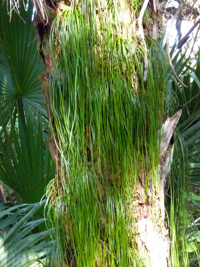 When “boots” are no longer present on the cabbage palm, he noted a shoestring grows in association with a dark green moss in shadier spots …