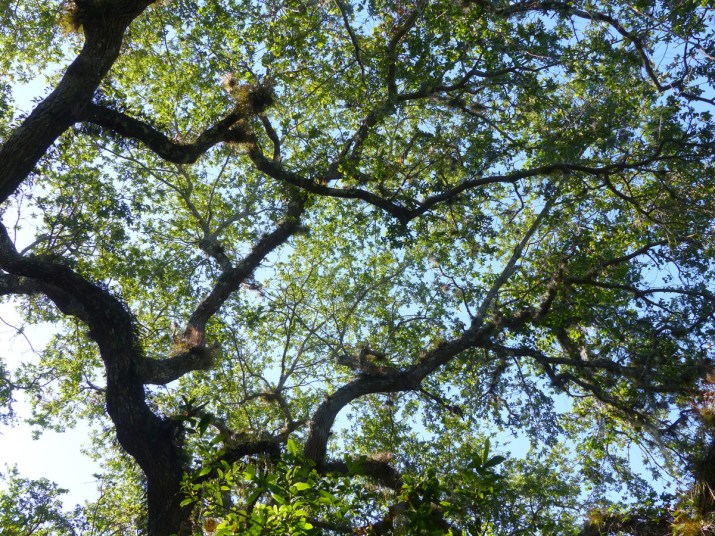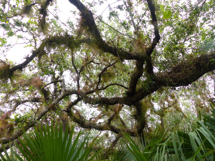 Some scientists speculate that stress may trigger acorn production. Hurricane Irma covered Florida in September 2017 and brought scorching salty winds miles inland. The leaves of the live oak trees at the Oslo Riverfront Conservation Area were stressed by this hurricane’s relentless winds. The first photo shows the green canopy at ORCA on a Memorial Day weekend walk on May 28, 2017, and the second shows the browned leaves that remained on the live oak at the west end of the ORCA parking lot after Hurricane Irma’s wrath.