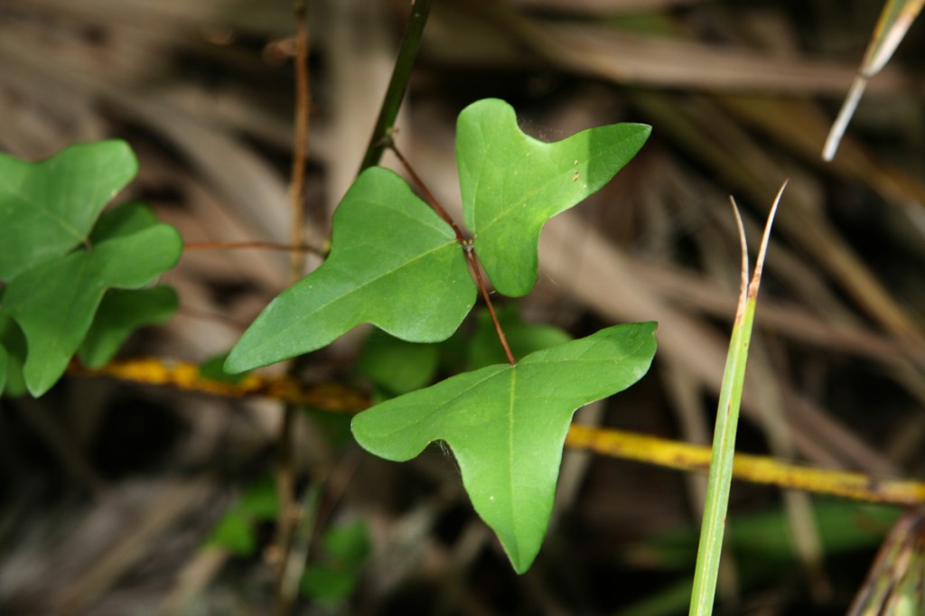 Also known as Cherokee bean, coralbean often, but not always, sheds all of its leaves prior to flowering. Its compound leaves are held in three’s as is common in the pea family, Fabaceae, and they have a distinctive arrowhead shape.