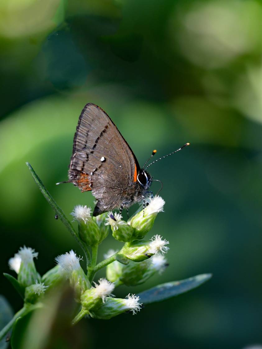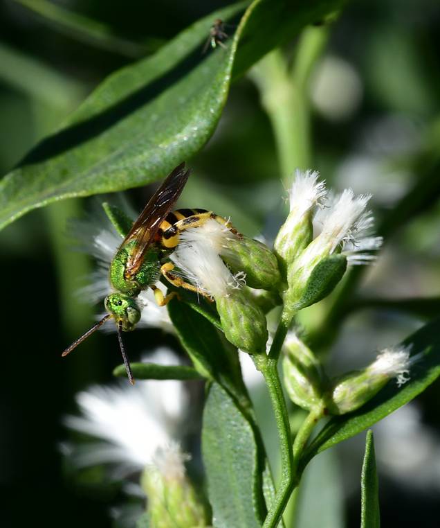 Groundseltree grows to be up to 15′ tall, and is the only native tree in the daisy family, Asteraceae. As with most members of this plant family, pollinators are attracted to the flowers of the groundsel tree, including a grey hairstreak butterfly and sweat bee in the photos below taken by George Bollis …