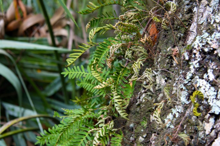 Once upon a time, the botanical name for this plant was Polypodium polypoidiodes. That was changed to Pleopeltis polypoidiodes. That name is now reserved for a small population of resurrection fern that grows only in the Florida Keys and has peltate scales on the top of the fronds, as well as on the bottom.
