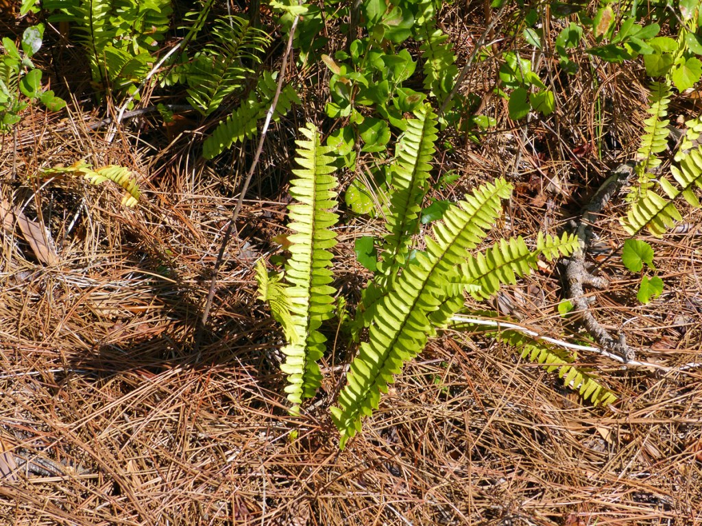 The “real” and original Boston fern in commerce since the 1890’s is Nephrolepis exaltata, called sword fern or wild Boston fern by the Florida Plant Atlas. We saw it growing in the wild when we visited the Coastal Oaks Preserve on 2-26-2022.