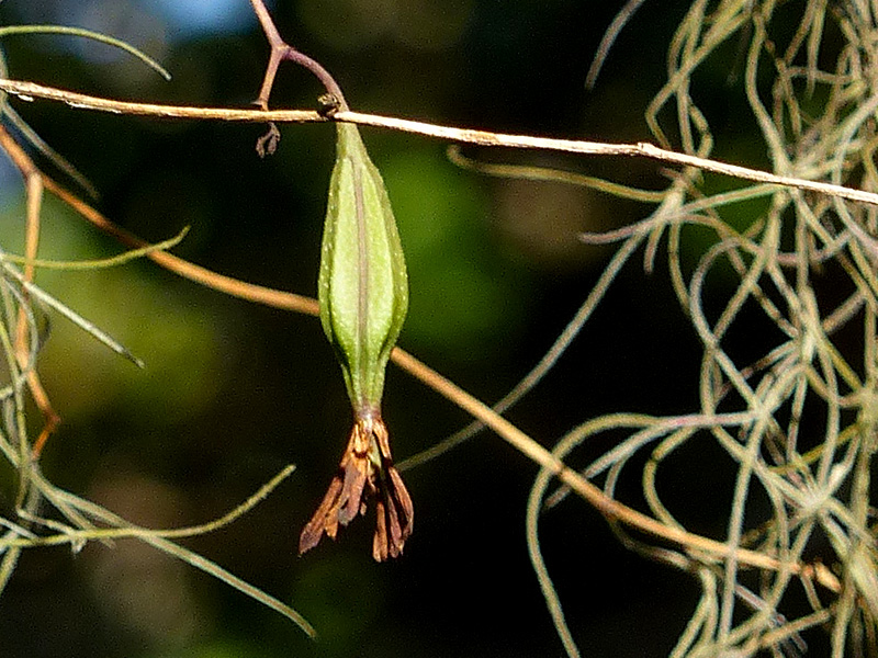 A few of the many seeds will attach to a rough surface, like the deeply furrowed bark of a live oak tree (Quercus virginiana), and, under the right conditions, germinate.