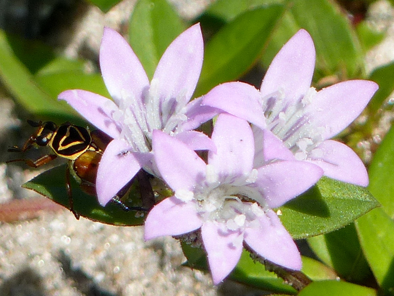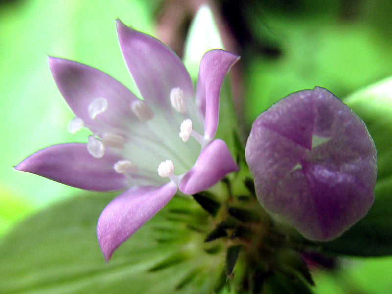 The color of its star shaped six-petaled lowers can be quite variable: whitish, pinkish, lavender-ish …
