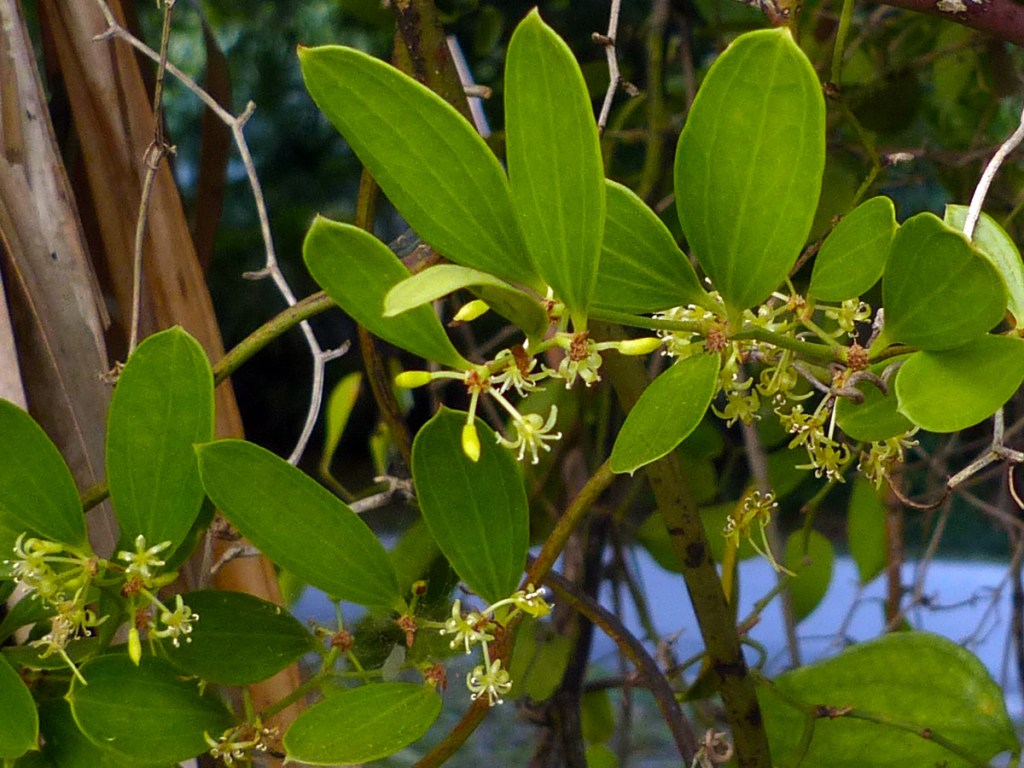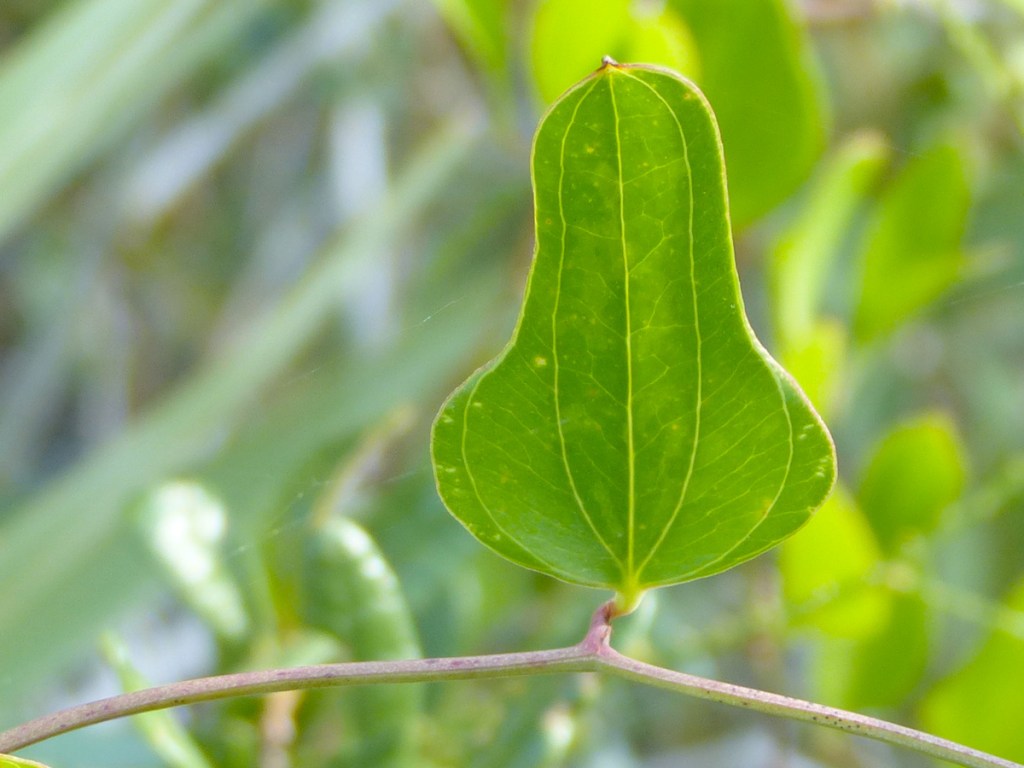 Greenbrier leaves are very variable in shape. The leaves of laurel greenbrier appear to be held vertically atop a twisted reddish/pinkish petiole …