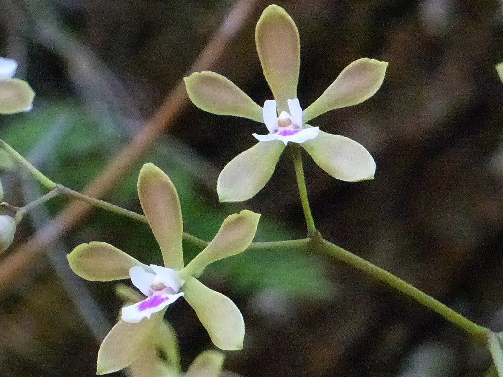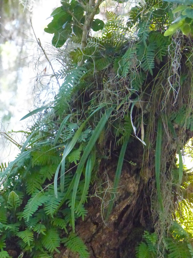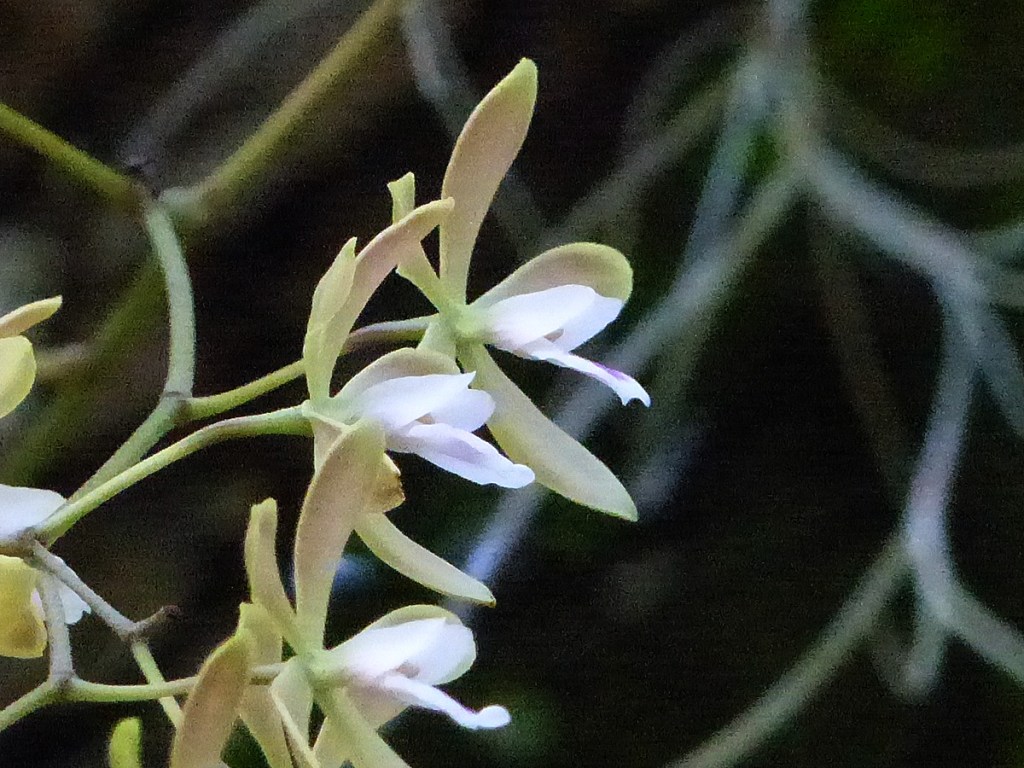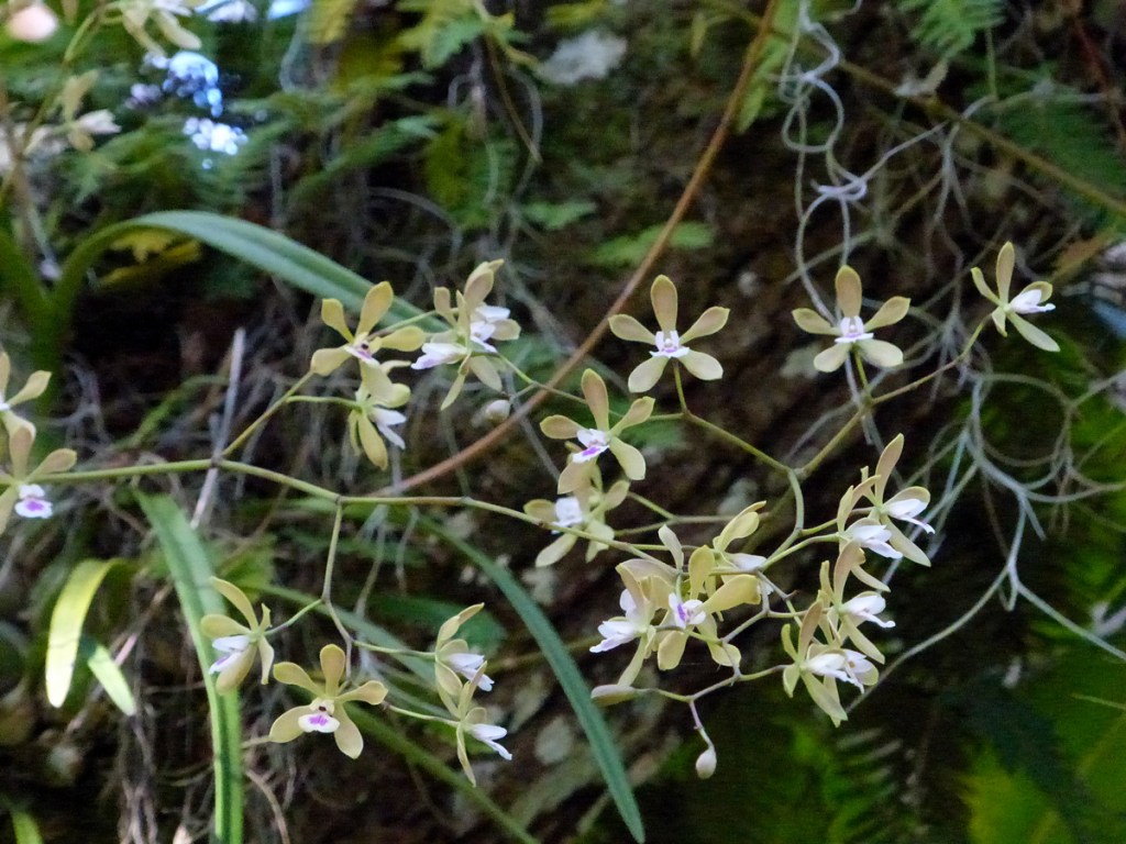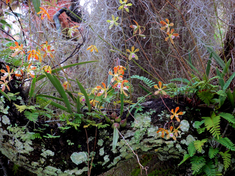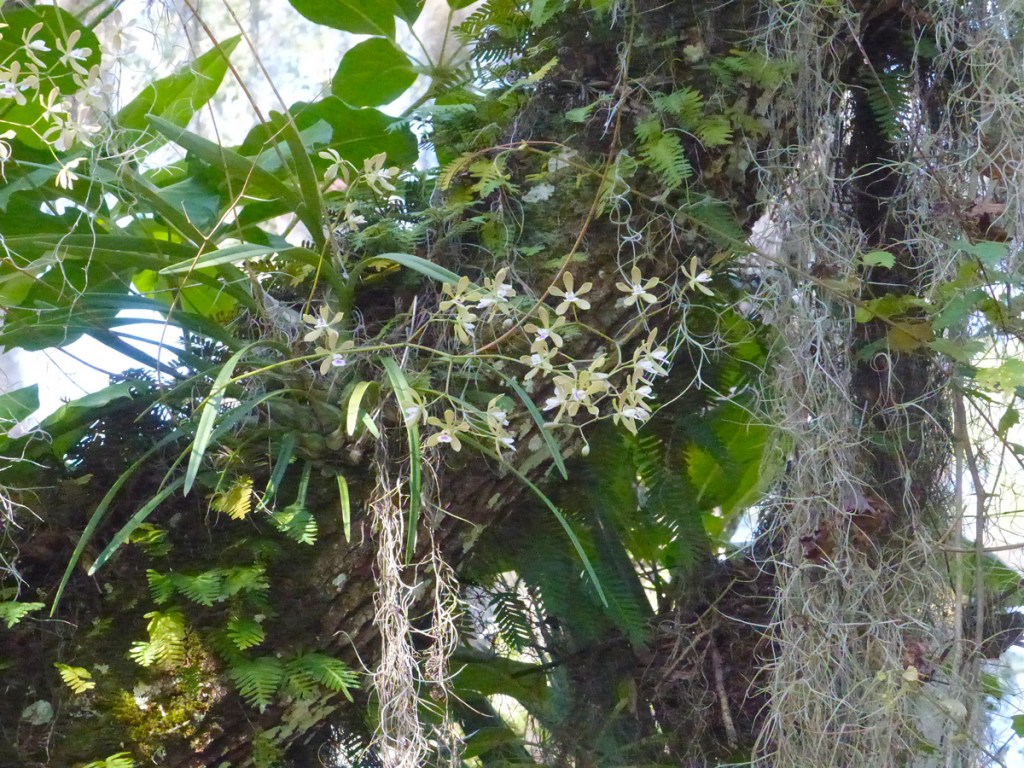 The Florida butterfly orchids at ORCA are on live oak (Quercus virginiana) trees. Elsewhere, you will find them growing upon red maple (Acer rubrum), bald cypress (Taxodium distichum), pop ash (Fraxinus caroliniana), pond apple (Annona glabra), strangler fig (Ficus aureum), and buttonwood (Conocarpus erectus) in places where the humidity is high.
