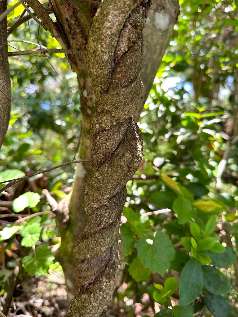 The leaves of this high-climbing, twining vine are alternate with 5 to 15 pairs of oval to oblong leaflets. the foliage has a deceptively delicate appearance.