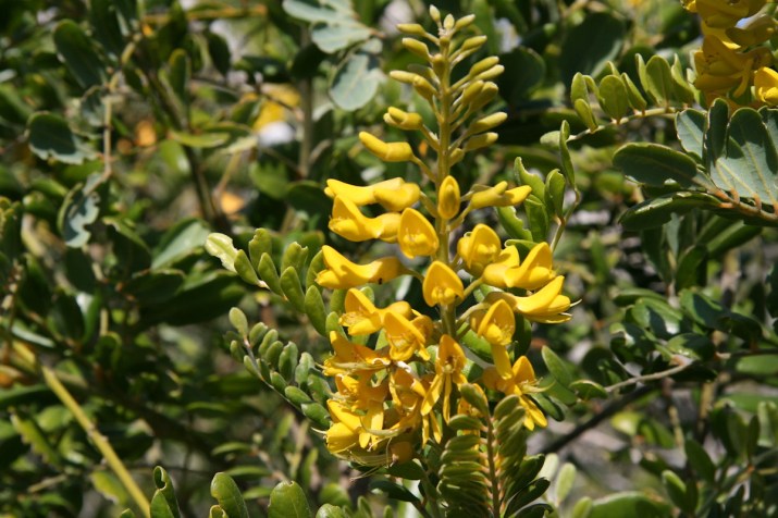 Yellow necklacepod is a long-lived perennial shrub that grows to be 10’+ feet tall and blooms throughout the year …