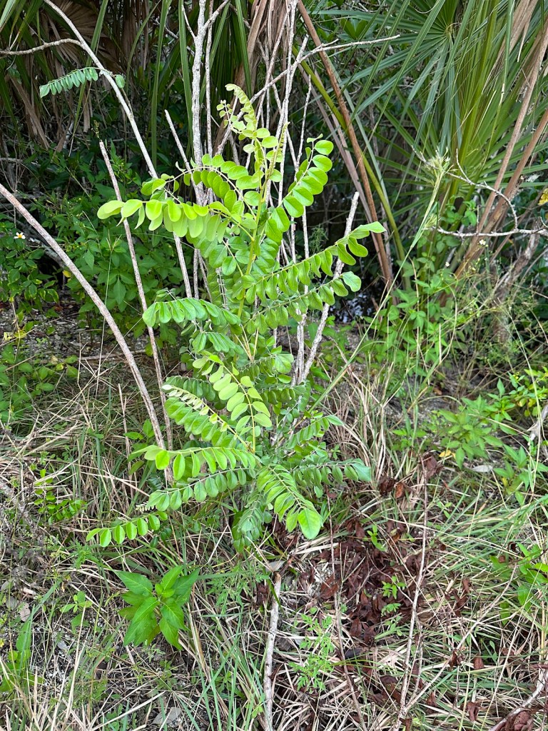 Many members of the pea family, Fabaceae, have pods that split length-wise (dehisce) to expel the seeds. Yellow necklacepod, by contrast, is indehiscent. The foliage of Florida’s native yellow necklacepod is odd pinnate and only slightly hairy when young.