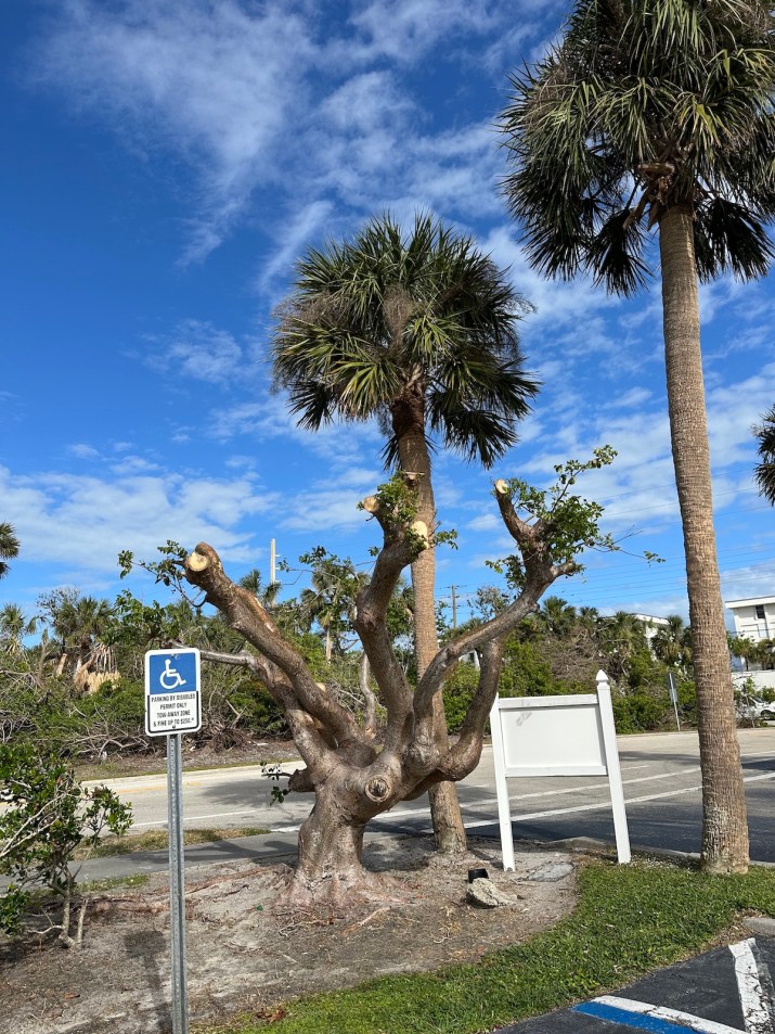 Florida’s native trees and other plants have adapted to hurricanes over eons and show amazing resilience like the cabbage palms (Sabal palmettos) that were near to the damaged gumbo limbo.