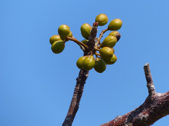 Copperwood, West Indian birch, turpentine tree, and tourist tree are all common names given to gumbo limbo (Bursera simarouba). We saw gumbo limbo – almost leafless – full of fruit on our walk at Pelican Island National Wildlife Refuge on 3/9/25. The fruit is a small, three-valved capsule that is spread by birds.