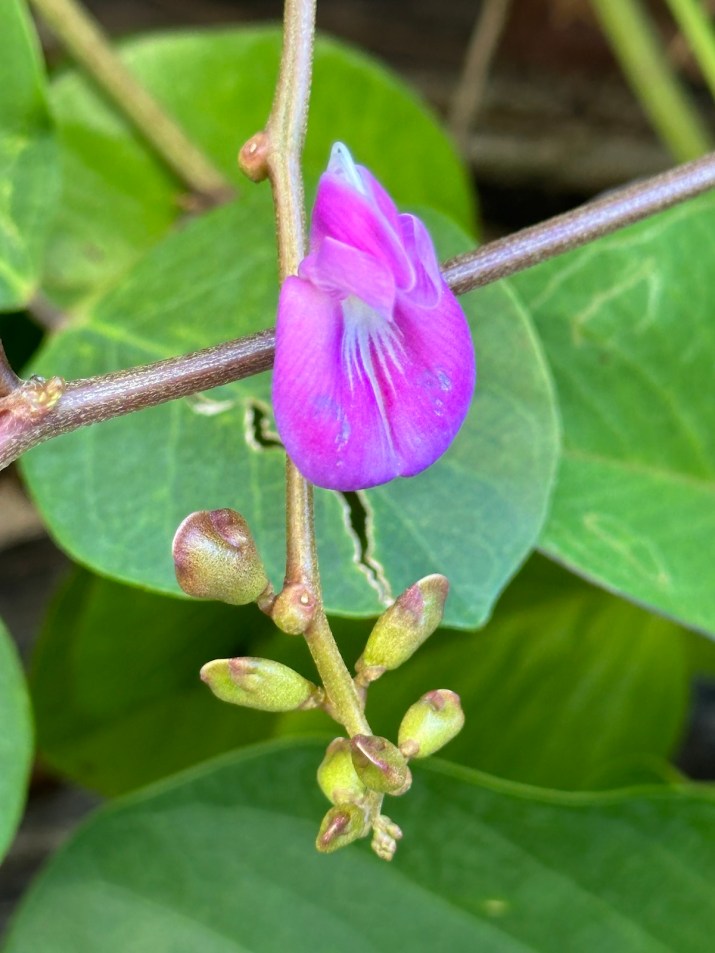 A member of the pea family (Fabaceae), its “sweet pea” type flower is purplish in color – sometimes bright and sometimes pale …
