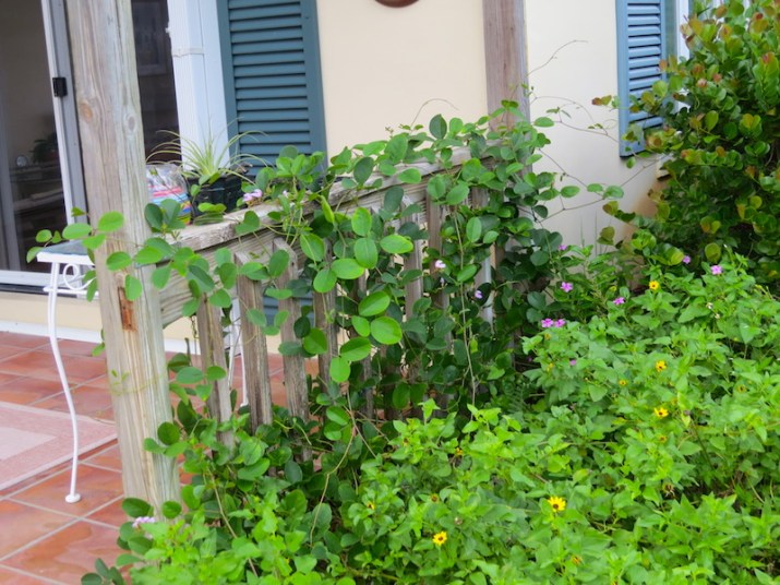 Consider using this salt and drought-tolerant vine in sunny locations in your landscape (alone or along with railroad vine) for … It is shown below gracing a railing in the landscape of Martha Willoughby (Class of Fall 1998) along with other beach plants including beach dune sunflower (Helianthus debilis) and cocoplum (Chrysobalanus icaco) …