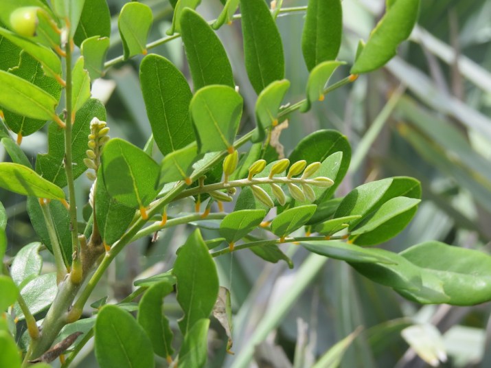 We have seen this native shrub growing in sunny places along mosquito control dikes at Pelican Island National Wildlife Refuge, Brevard Barrier Island Sanctuary and Education Center, and Oyster Bar Marsh Conservation Area. It also grows near the ocean on the “back” of beach dunes.