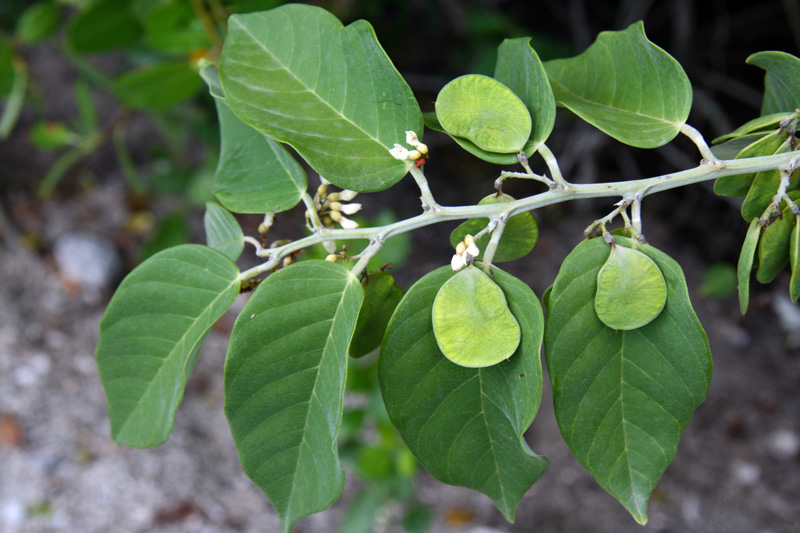 You will find lots and lots of coinvine (Dalbergia ecastaphyllum).seeds on the beach. It is hard to tell if these seabeans have come from “local” Florida plants or have been carried from other places by tropical currents arising in the New World. This plant is yet another member of the large pea family (Fabaceae).