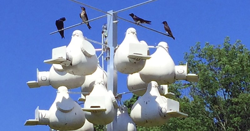 Pretty purple martins grace a tower of gourds at the Great Swamp National Wildlife Refuge in New Jersey. These insectivores are naturally secondary cavity nesters (i.e., tree holes, woodpecker holes) but have co-evolved (almost entirely in the eastern part of…