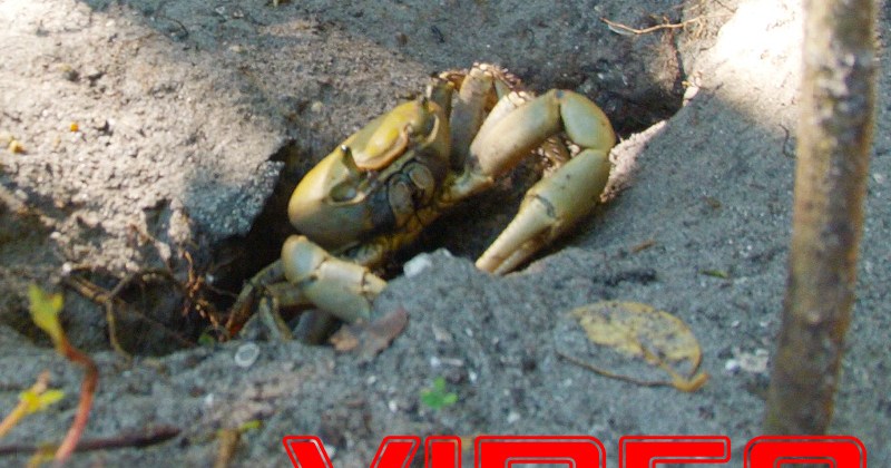 A Blue Land Crab (Cardisoma guanhumi), also known as the Great Atlantic Land Crab, prowls around its burrow in this short movie slightly sped up to make it a bit more interesting for us lazy humans. This unusual albino Land Crab lives on the edge of a mangrove wetland bordering a front yard on the barrier island along the Indian River Lagoon in Indian River County, Florida. Watch toward the end, the sudden shift in the camera angle is actually caused by the Land Crab moving the camera, which the Crab takes great interest in whenever the camera is out by the Crab’s burrow. This footage is an excerpt from my shambling attempt to document the life history of the Land Crab and its beach-dwelling cousin, the Ghost Crab. With a little more motivation on my part, this project will get done — one day soon!