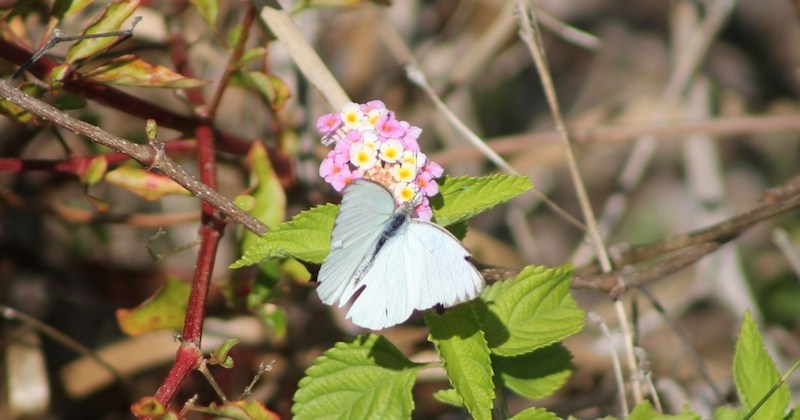 Great southern white butterflies (Ascia monuste) were abundant on our walk at Pelican Island National Wildlife Refuge on 4/27/2014. Karen Schuster sent this photo of one sipping nectar from lantana (Lantana camara), an invasive pest plant that is very attractive…