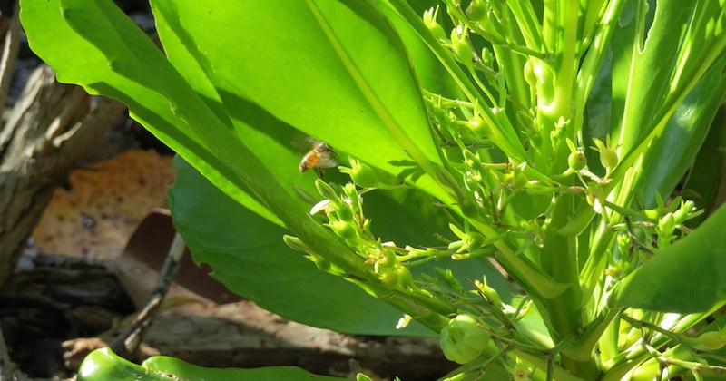 A Fathers' Day field trip to Prange Island compliments of Joe Carroll (Class of Fall 1998) began with a look at an invasive pest plant, Beach naupaka (Scaevola taccada), being pollinated by a European honeybee. This plant has 'volunteered' upland…