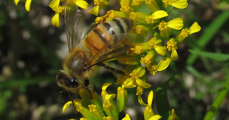 Bees, wasps, flies, moths, skippers, butterflies, and other pollinators flock to Flaveria linearis, yellowtop. Fall is the usual time for flowering, but some of the yellowtops donated by Judy Gersony and planted on 5-23-2015 in the Audubon House landscape are…